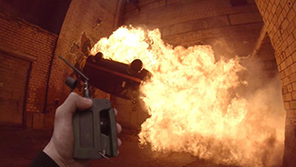 Bizarre, bizarre… On a beau fouiller notre mémoire de cinéphile, pas facile de se rappeler d’un film qui nous avait procuré une telle sensation d’interactivité vis-à-vis de son contenu. On a beau tenter de se raccrocher à une poignée de péloches bien énervées où le pétage de plomb hormonal était de rigueur (le diptyque Hyper tension en tête), l’expérience différait par l’absence de la vue subjective. On a beau essayer de relier un tel parti pris de mise en scène à la fameuse séquence de l’adaptation ciné de Doom, ça ne fonctionne pas, et pour cause : non seulement le nanar d’Andrzej Bartkowiak visait l’hommage appuyé au jeu vidéo éponyme à travers un clin d’œil gros à s’en péter les maxillaires, mais le spectateur avait moins l’impression d’avoir un joystick dans les mains que de regarder quelqu’un qui a un joystick dans les mains. Ce qui nous amène logiquement à déceler enfin cette source de familiarité que l’on recherchait, à savoir non pas le cinéma mais le jeu vidéo. Soit un territoire sans cesse convoité par le 7ème Art pour des résultats plus que contrastés. Le bug est toujours le même : tenter de connecter deux langages qui n’ont pas la même logique narrative, c’est un peu comme escalader une clôture électrique où la quantité très faible de volts grimpe aléatoirement vers un nombre avec quatre zéros derrière. On vous passe la liste des désastres qui en ont découlé, histoire de se concentrer avant tout sur Hardcore Henry, sans doute l’une des premières hybridations dignes de ce nom entre les deux médiums.