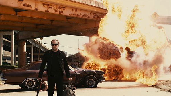 A première vue, le projet n’avait pourtant rien pour rassurer : outre son allure de série Z torchée en quatrième vitesse et de véhicule promo pour une star has been désireuse de multiplier les projets (sans doute pour payer ses impôts en retard), la présence de Patrick Lussier derrière la caméra n’était pas forcément la meilleure chose qu’il pouvait arriver. Non pas qu’il soit l’égal d’un Brett Ratner (faut pas déconner non plus), mais sa filmographie, incluant un minable reboot de Dracula et un remake passable du slasher Meurtres à la St-Valentin, était tout de même un signe négatif. Pour autant, si Hell Driver aura fini par sortir du lot malgré les mauvais avis à chaud qu’il aura pu susciter, c’est vraiment grâce à l’association entre un réalisateur prêt à se lâcher dans l’outrance et un acteur si imprévisible qu’on ne sait désormais plus vraiment ce qui se passe dans sa tête. En premier lieu de la réussite du projet, il convient donc d’aborder à nouveau le cas Nicolas Cage : oscarisé pour Leaving Las Vegas, consacré par ses prestations marquantes chez John Woo, Spike Jonze, David Lynch ou Brian de Palma, l’ex-mari de Patricia Arquette semblait avoir trouvé sa place parmi les acteurs les plus intéressants d’Hollywood, en alternant des films d’auteur prestigieux et des blockbusters cartonnant au box-office. Mais voilà, depuis une dizaine d’années, on pensait le bonhomme égaré dans la même voie que Christophe Lambert, contraint d’enchaîner les projets commerciaux sans grand intérêt afin de payer ses factures. Que l’on se rassure (ou que l’on continue à s’inquiéter, c’est selon), Nicolas Cage est en pleine forme, assume tous ses choix et se lâche dans des prestations non-sensiques où son sens du cabotinage fait merveille. Sa méthode est simple : une approche « chamanique » du jeu d’acteur, lui permettant d’être littéralement possédé par un rôle (c’est lui qui le dit !) et de laisser parler ses émotions internes, presque à la manière d’un sorcier en plein trip. Du coup, au beau milieu d’une avalanche de bouses, il y avait la place pour deux ou trois prestations mémorables, avec, en tête de liste, ses rôles de paternel psychopathe dans Kick-Ass et de flic ripou cocaïné dans le Bad Lieutenant de Werner Herzog.
