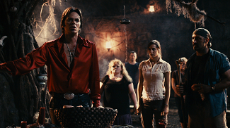 Toutefois, c’est précisément dans cet entre-deux que le film de Patrick Lussier tire toute sa force : ne pas se regarder le nombril lorsque l’on souhaite se lâcher dans le grotesque, y aller franco sans se flatter l’ego, et laisser son récit minimaliste foncer pied au plancher sans regarder dans le rétroviseur. Le show d’esbroufe offert par le relief 3D donne naissance à quelques détails purement jouissifs, ne serait-ce que pour la présence de nichons siliconnés ou de quelques membres arrachés qui valsent vers nos orbites, mais paradoxalement, il n’est jamais aussi brillant que la fluidité avec laquelle Lussier lâche des tonnes de beaufitude texane dans un souci de je-m’en-foutisme très bien revendiqué. A ce titre, rien ne manque au catalogue des poncifs : gunfights burlesques où le fusil à pompe fait de gros dégâts, rednecks barbus qui ont visiblement confondu le gel douche avec l’huile de vidange, bimbos dénudées qui ont sans arrêt le feu au niveau de l’entrejambe, dialogues bien débiles où se mêlent vulgarité crasse et frime mal calibrée, décors anachroniques où les usines désaffectées côtoient des bars bouseux dignes d’un saloon de western, etc… C’est au milieu de cette piscine de portnawak, au ridicule totalement assumé et parfois un peu orientée comic-book, que Cage se lâche dans l’excès, cohabitant avec une flopée de seconds rôles bien gratinés, entre une Amber Heard ultra-sexy au minishort moulant (la plus belle femme au monde, ça ne se discute pas !), un Billy Burke en gourou sataniste dont le look ridicule de redneck gothique fait moins peur que sourire, et un William Fichtner en démon magicien qui donne une interprétation démente et dégénérée de l’agent Smith. Des prestations souvent assez fabuleuses où tout le monde s’en donne à cœur joie, assumant pleinement le cliché qu’ils incarnent et n’essayant pas d’y changer quoi que ce soit.