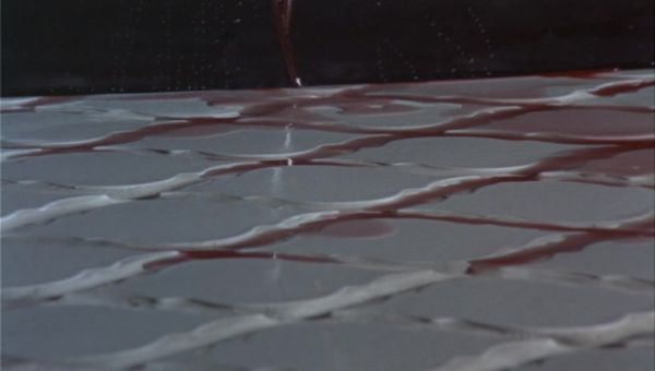 Mike Hodges montre ainsi une société fonctionnant comme une mécanique déshumanisée n’ayant aucun état d’âme vis-à-vis de ceux ne rentrant pas dans le rang. Dès les premières secondes, elle apparaît envisager la possibilité de l’échec de l’opération chirurgicale et acter l’exécution sommaire du patient incurable dans ce cas-là. L’autorité élimine donc au lieu de soigner. Hodges rajoute en ce sens une mention sur la lobotomie. La pratique barbare pouvait se vanter de rendre ses patients calmes et apaisés mais celui-ci devenait un individu diminué, amorphe et apathique. Une société avec des citoyens dénués d’émotion semble préférable à une avec des individus vivant pleinement dans un tumulte émotionnel (aussi potentiellement violent soit-il). Hodges appuie cette idée de pureté aseptisée par l’utilisation de décors aux prédominances blanches. Lors du premier meurtre de Benson, l’irruption du sang rouge en devient plus choquante. Mais Hodges ajoute une note plus ironique en se focalisant sur le sang coulant en suivant le motif du carrelage. La violence de Benson ne suit finalement qu’un schéma qu’on lui impose.