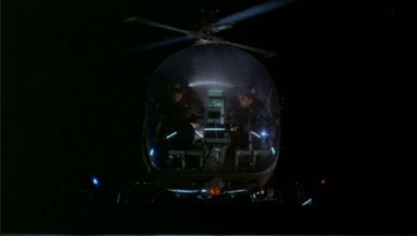 Cela commence dès le plan introductif. Sans explication, on voit un hélicoptère de la police prendre son envol. Pragmatiquement, on considère que cela est lié au transport de Benson de son lieu de détention à l’hôpital. Cela apparaît d’autant plus plausible par rapport au générique d’ouverture qui suit. Alors que les noms défilent, on contemple l’œil d’un garde surveillant Benson par un judas. Néanmoins, Benson arrive quelques minutes après à l’hôpital dans un fourgon sans l’ombre d’un hélicoptère à l’horizon. La présence de cet hélicoptère semble incongrue pour un film sur une procédure supposément millimétrée. La récurrence du plan de l’œil à travers le judas sous-entend toutefois qu’il n’en est rien. Initialement assigné à la police, sa réutilisation l’attribue tout autant au personnel hospitalier. Il y a ainsi une confusion de l’institution policière et hospitalière, semblant participer au même système de surveillance généralisée. Hodges ne cache plus son jeu à la fin et l’ultime itération du plan s’adressera directement au spectateur. Entretemps, il aura dévoilé le rôle de l’hélicoptère.