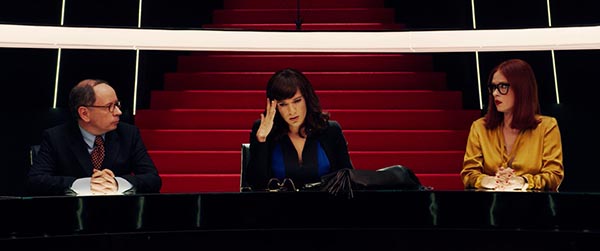 Le ton provocateur de Beigbeder est donné dès sa présentation de cette multinationale de cosmétiques surnommée « L’Idéal ». Directeurs dominateurs ou salariés dominés, tous se renvoient le ballon de la suffisance et/ou du pathétique dans un torrent de répliques assassines, le tout chapeauté par une tête pensante, cassante comme les cheveux et sèche comme les pointes, qui officie depuis sa salle de crise à la Docteur Folamour (chapeau à Jonathan Lambert, qui parodie génialement l’ancien directeur transsexuel de L’Oréal). Autour de cet ovule grossissant et voué au fascisme de l’apparence (« Bientôt, toutes les femmes seront uniques ») gravitent des spermatozoïdes de vacuité abyssale dont il est préférable de rire à gorge déployée. Le tableau est ici édifiant, d’un mannequin pris en flagrant délit de sextape nazi-SM sur YouTube (avec « Heil Hitler ! » en guise de râle orgasmique) à des jeunes innocentes qui pensent à une taille de chaussure quand elles entendent « 39-45 », en passant par un oligarque russe qui fait vivre un Space Mountain cocaïné aux invités de sa partouze privée (laquelle renvoie d’ailleurs Projet X au niveau d’une bataille de polochon entre adolescentes acnéiques). Tout ça enjolivé par l’inspiration graphique d’un cinéaste qui déploie dix idées par plan (la scène du casting, entre phrases qui giflent et scrolling qui éjecte, est un pur régal) et qui n’hésite pas à convoquer tout et son contraire pour rendre compte de la folie du monde d’aujourd’hui. A titre d’exemple, voir les Pussy Riot tacler la dictature du paraître sur fond du Barbie Girl d’Aqua suffit à provoquer une petite érection.