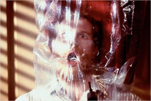 Et par le biais de la déconstruction mentale, cet anthropologue qu’est Romero nous rappelle que toute idée d’évolution n’est que chimère, et que c’est l’acte physique le plus atrocement primitif qui décidera de la fin de l’humanité (contenue en nous) comme de l’Humanité (avec un grand h). Le gars typique, face à l’idée d’autodéfense, redevient l’animal violent qu’il n’a cessé d’être depuis la nuit des temps. Déprimant constat, dans la mesure où le singe est inséparable du protagoniste, partageant son intimité, quotidienne comme psychique : il s’agit donc d’un duel sanglant livré contre soi-même. Jolie allégorie de l’artiste qui, en plus de devoir livrer une lutte contre les institutions (et si les studios n’étaient rien d’autre que ce personnage de la mère autoritaire et hystérique ?) n’a plus bel ennemi que lui-même : sa fragilité est une fatalité et ses émotions demeurent difficilement contenues face au consensus qui font état de « paralysie »…Combat chaotique ! Puisque, ainsi que l’illustre la fin alternative, c’est l’anarchisme de l’inconscient et la violence pulsionnelle qui remportent la victoire : et une tribu féroce de singes d’assurer le massacre final ! Dans ce décorum propre à toutes les théories, le cinéaste imagine la dangerosité de cette agressivité qui le conditionne en privilégiant la création artistique. Incident de Parcours prend alors la forme d’un exercice stylistique vital conduisant à la Catharsis…ce n’est « que du cinéma », comme le surligne l’adage.