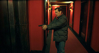 Par ailleurs, Refn met à nouveau en valeur un élément précis : la couleur rouge. Déjà exploitée dans Bleeder pour refléter l’instabilité pulsionnelle des personnages, celle-ci devient ici la matérialisation abstraite d’une peur croissante. Par exemple, lorsque la caméra fonce vers la tête de Turturro, on peut voir une main ou un visage qui tente de traverser une surface rouge sang – les expérimentations visuelles des futurs films de Refn trouvent ici leurs prémices. Un peu plus loin, la caméra se fond dans le rouge du drapeau américain à un moment très précis, à savoir celui où le film change de point de vue et adopte celui de l’assassin (un flic paternel et couvert d’éloges par sa hiérarchie, incarné par James Remar). Sans oublier un plan sans lien narratif avec le récit, casé dans le montage entre deux scènes de dialogue, et qui montre la simple activation des signaux rouges d’un passage à niveau : par la place qu’occupe ce plan au sein du montage, on y devine un signal d’alerte sur l’imminence d’une confrontation entre Caine et l’homme qu’il recherche. La peur est donc là, totale et permanente. Elle précède l’action. Elle masque la vérité. Elle brouille les perceptions. Elle fait ressurgir l’horreur. Elle « est » le film.