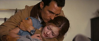 Le personnage principal Cooper aurait très certainement pu s’analyser comme la réponse du mûr Spielberg au Roy Neary de son homologue jeune. Cooper a une âme d’aventurier. Il voit dans l’exploration la voie vers l’accomplissement. Mais il doit faire face à son époque. La planète se meurt et et ce pilote est condamné à rester cloué au sol pour cultiver les dernières denrées nourrissant l’humanité. Il accepte ces fameuses choses pratiques d’un monde pragmatique. Pour autant, il reste en lui un fond d’idéalisme. Alors que les institutions éduquent la jeunesse en castrant toute pensée trop fantaisiste ou dispersive (l’homme n’aurait jamais posé le pied sur la lune par exemple), Cooper veut transmettre cette excitation de la découverte à ses enfants et tout particulièrement à sa fille Murphy. Elle, peut-être, aura l’opportunité de suivre ce chemin dans le futur. C’est pourtant Cooper qui se voit offrir cette chance en pilotant une navette spatiale pour trouver un nouveau monde habitable afin d’assurer la survie de l’espèce. Plus que le grisant appel de l’aventure, c’est l’importance de cet enjeu qui le conduit à abandonner sa famille. A quoi peut bien penser Roy Neary lorsque le vaisseau extraterrestre l’emmène vers son destin loin de la Terre ? Accorde-t-il un instant à la famille qui laisse derrière lui ? Un tel aspect est laissé à l’imagination du spectateur mais Interstellar ne laisse pas d’échappatoire à Cooper. Une scène poignante l’oblige à faire face au poids d’un tel sacrifice. Bloqué une heure aux abords d’un trou noir, Cooper a perdu trente ans d’existence et s’en va consulter autant d’années de messages envoyés par ses enfants. Les choses qu’il a ratées ne seront pas aussi douloureuses que le souvenir que sa progéniture gardera de lui par son choix. Bien qu’il ait très largement remanié le scénario, Nolan ne s’est pas défait de ce passage déjà présent dans les versions supervisées par Spielberg. Lui-même père de quatre enfants, il s’avoue proche de ces préoccupations qui étreignaient Spielberg lorsqu’il travailla dessus et assume par ailleurs l’influence de Rencontres Du Troisième Type.