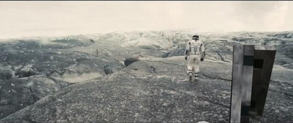 C’est dans une certaine indifférence que débute le récit. Ce manque d’attrait n’est pas le fait de l’optique minimaliste revendiquée (mort de la planète illustré par des tempêtes de poussières, contexte de l’action purement campagnard) mais à ce sérieux comblant mal les failles du scénario. Entre des facilités d’écriture à s’en taper la tête contre les murs (l’embrigadement éclair du héros dans la mission suite à son arrivée surprise à la base secrète de la NASA), le long-métrage nous soumet son lot d’idées dont on prévoit rapidement les retombées. Les inserts documentaires ouvrant le film nous informent immédiatement sur le sort de l’humanité et le récit introduit une sous-intrigue sur un fantôme dont on devine rapidement de quoi il s’agit. Or c’est précisément ce point, celui le plus irritant du premier acte, qui va démontrer la réussite d’Interstellar. La révélation du troisième acte sur ce faux mystère devient un point d’orgue émotionnel d’une rare puissance. Nolan réussit à transformer ce qui pouvait être un classique rebondissement attendu en un monument mélodramatique. Celui-ci doit toute sa force à ce que le film a pu concevoir depuis l’installation de l’histoire, que ce soit en termes scientifiques ou en dilemme moral. En dépit de tous les défauts énoncés, le cinéaste a su faire en sorte que les moments où seule sa mise en scène compte transportent le film à destination. Par ces instants, il nous a impliqué dans les épreuves qu’affrontent les protagonistes et leurs troubles qui n’a d’égal que la magnificence de l’espace intersidéral les entourant. Notons en ce sens que la force immersive du film se constitue tout autant sur son visuel rigoureux et splendide que sur son travail sonore constitué d’alternance judicieuse entre plages assourdissantes et silences profonds.