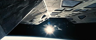 Ce rapprochement autour d’un sujet commun permet néanmoins de mieux appréhender les limites du cinéma nolanien exposées plus haut. Comme à son habitude, il fait d’Interstellar un film où on parle… où on parle beaucoup… où on parle beaucoup au-delà de toute raison. Des discussions dont le seul but est de rationnaliser pour donner une impression de sérieux pointu. Est-ce vraiment la meilleure approche pour servir ses ambitieuses thématiques ? La question se pose d’autant plus lorsque les thèmes en question jouent sur la corde raide. C’est précisément ce qui arrive quand on parle de la survie de l’humanité grâce au pouvoir de l’amour. En voyant des scientifiques discuter sérieusement de l’amour comme d’une donnée calculable au même titre que la gravité, le ridicule ne semble qu’à un pas. Ce pas, il sera aisé de le franchir si l’on n’accepte pas le principe élémentaire du cinéma : croire. Mais la croyance ne se construit pas par un déballage d’arguments ou des démonstrations par A+B. Elle passe par ce que dictent nos émotions et c’est par celles-ci que l’on peut atteindre une compréhension supérieure. L’impact métaphysique et existentialiste d’un film comme 2001 : L’odyssée De L’espace n’est par exemple aucunement dû à un quelconque intellectualisme mais à ses aspects purement sensoriels. Et c’est précisément de cette manière que fonctionne le cinéma de Spielberg. S’il a de l’exigence et du talent, Nolan manque juste d’assurance pour se lancer à corps perdu là-dedans. Ces multiples dialogues sont autant d’outils de sécurisation avant de s’aventurer dans cette voie. Dès que les bavardages cessent, que les concepts scientifiques ne sont plus étudiés mais employés, Interstellar arrive à atteindre une véritable grandeur.