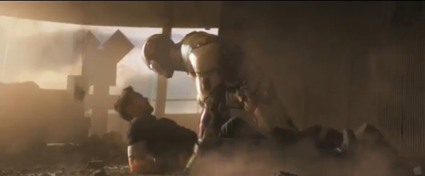 Iron Man 3 pose ainsi un concept aussi évident que surprenant : donner une vie propre à Stark et à son armure. Jusqu’à présent, on pouvait considérer l’armure comme une extension de Stark. Or ici, elle est représentée comme une entité individuelle à part entière. Une image simple mais marquante intervient après que le personnage fut mis à bas. Stark installe son armure sur un canapé avant de s’affaler à ses côtés. Par la position donnée à l’armure, le plan les réunissant laisse ce sentiment de voir clairement deux protagonistes. Bien qu’inaboutie, la scène du cauchemar décrite plus haut en est également une illustration. Elle a également pour fonction de bien dépeindre l’état d’angoisse du personnage dans le premier acte. Après avoir sauvé in extremis la situation à la fin d’Avengers, Stark est confronté à une crise qui lui pendait au nez depuis le départ : il n’est rien. Sans son armure, il est insignifiant et incapable d’affronter la menace qu’il a entraperçu en passant dans un autre monde. Cet événement l’a brutalement extirpé du cocon que constituait l’armure et il se retrouve seul face à ce qu’il est. Ses craintes naissent du fait qu’il n’a pas accomplit le parcours lui permettant de comprendre qu’il est bien plus que ce qu’il ne pense.