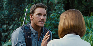 Le choix d’un scénario post-Amblin – qui reproduit la mise à l’épreuve de l’éternel schéma familial – va lui aussi dans ce sens. Il n’est certes plus surprenant pour un sou de retrouver là ce qui s’apparente désormais à des clichés invariables du blockbuster familial : en gros, voici deux ados encore plus geeks que Tim et Lex, attristés à l’idée de voir leurs parents divorcer, parachutés dans le parc pour se changer les idées, menacés par l’Indominus au cours de la visite, et finalement sauvés par le duo formé par leur tante Claire (si obsédée par son travail qu’elle ne s’occupe pas d’eux) et par un dompteur de raptors (en réalité un ancien flirt de Claire). Toujours cette idée des adultes bloqués dans leurs soucis conjugaux ou professionnels, mais prompts à sauver la progéniture qu’ils ne veulent pas engendrer. Avec par-dessus ça, la stratégie n°1 de tout film-catastrophe que Jurassic Park reprenait déjà : faire du « monstre » une menace démesurée forçant une cellule familiale à se former ou à se consolider. Un schéma que Trevorrow reproduit avant tout par pure nostalgie, même si cela tend hélas à affaiblir la fibre dramaturgique du récit. Le vrai problème sera ici de ne pas ressentir un véritable attachement pour la plupart des personnages : de Chris Pratt à Bryce Dallas Howard en passant par Omar Sy et Vincent D’Onofrio, tous semblent jouer une partition figée, désamorçant ainsi la plupart des effets de suspense déballés par le réalisateur. Parce qu’en épicentre du projet, seul le parc lui-même sera ici capable d’offrir au film ses rares moments de terreur. Deux jolis exemples : c’est par le reflet soudain de la gueule béante de l’Indominus sur toute la surface de la vitre de leur véhicule sphérique que les deux gamins comprennent soudain le danger mortel qui les guette, et c’est en voyant une Claire armée d’un fumigène rouge devant une gigantesque porte blindée que l’on se statufie sur place lorsque résonne soudain le bruit des pas du T-Rex.