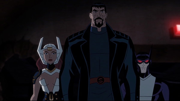 Synopsis : Dans un univers alternatif, une Ligue des justiciers, composée du fils du général Zod (Superman), de Kirk Langstrom (Batman vampire) et de Bekka, une New Gods (Wonder Woman), utilise la force brute pour remplir ses objectifs. Cela entraîne des frictions avec le gouvernement américain et lorsqu’une série de meurtres touchant des scientifiques a lieu, la Ligue est soupçonnée de ces crimes.