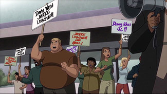 Synopsis : Dans un univers alternatif, une Ligue des justiciers, composée du fils du général Zod (Superman), de Kirk Langstrom (Batman vampire) et de Bekka, une New Gods (Wonder Woman), utilise la force brute pour remplir ses objectifs. Cela entraîne des frictions avec le gouvernement américain et lorsqu’une série de meurtres touchant des scientifiques a lieu, la Ligue est soupçonnée de ces crimes.