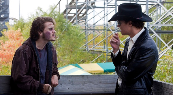 Tous semblent aussi paumés et désolants que le décor qui les entoure. Le seul soupçon de classe et de normalité n’est ici qu’une apparence séduisante : d’abord serein et mesuré, Joe Cooper aura vite fait de révéler sa vraie nature à partir du moment où un accord terriblement malsain aura été mis en place entre lui et Chris. Dans le registre du fou diabolique qui cache bien son jeu sous un look de flic quasi-eastwoodien, Matthew McConaughey offre ici une prestation sidérante dont l’impact, malgré une filmo généralement tournée vers les bluettes ou les comédies lambda, n’est finalement pas si surprenant que ça (souvenez-vous de son rôle ambigu dans Emprise de Bill Paxton). En tout cas, il en impose méchamment dans ce qui est sans doute le rôle de sa carrière, et le dernier tiers du film risque fort de rester dans les annales, ne serait-ce qu’au regard de son interprétation totalement fucked-up.