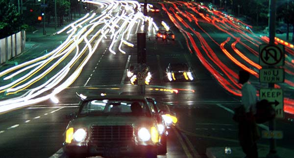 Il est vrai que les images de Reggio restent gravées dans la tête pour leur force de frappe sur l’esprit, mais pour le coup sans vecteur idéologique orienté dans un sens ou dans l’autre. Si l’on voulait décrire Koyaanisqatsi en une phrase, on pourrait dire la chose suivante : une objectivité qui, une fois enregistrée sous un angle impressionniste, fait naître de la subjectivité. L’exemple le plus parlant est bien évidemment ce raccord entre un plan astral de mégalopole urbaine et une photo des circuits d’un microprocesseur. Tout est alors dit : un être humain réduit au rang d’électron, jouissant d’une certaine liberté dans un environnement qui, lui, n’a pas été conçu pour en bénéficier. Le contraste qui s’en suit est tout aussi évocateur : après ces fulgurantes vingt minutes de frénésie urbaine intensive (dont le concept sera réutilisé en 2001 dans l’hallucinant clip du Ray of Light de Madonna) se déroulent des images plus lentes, plus mélancoliques, centrées sur l’ennui et le vide intérieur d’individus détachés du processus de « production » (le ralenti alterne alors avec de brillants effets de surimpression). De l’une à l’autre, de la nature au progrès, de l’humain au système, du créateur à sa création, le film n’impose aucun jugement. Tout juste se contente-t-il – et c’est déjà énorme – d’opérer une mise en perspective du particulier au sein du général, et d’inviter son spectateur à une remise en question des effets du général sur le particulier.