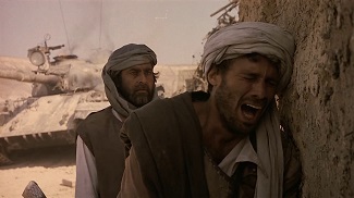 Reynolds souhaitait accoucher d’une vision sale et laide de la guerre, et c’est peu dire que sa scène d’ouverture se veut claire comme de l’eau de roche sur ce point-là. S’ouvrant sur le massacre d’un petit village afghan, le cinéaste met tout de suite le paquet en matière de scènes choc : maisons immolées, villageois exterminés (enfants compris !), sans parler de l’écrabouillage d’un pauvre paysan sous les chenilles du char – une scène épouvantable qui en a traumatisé plus d’un. A priori, les enjeux ont l’air limpides (les soviétiques quasi-nazifiés d’un côté, les victimes afghanes de l’autre), mais il convient d’être attentif à tout ce qui va suivre, tant le cinéaste va s’ingénier moins à inverser les rôles qu’à alterner les points de vue. Démarche assez inédite pour un film de guerre : là où la logique du genre semble imposer d’approfondir un conflit en creusant le plus possible l’un des deux camps, Reynolds tient jusqu’au bout le pari d’explorer les deux points de vue, switchant de l’un à l’autre tout en dressant de très savantes passerelles narratives. En outre, bien que le film récupère les conventions du western (une intention criée dans chacun de ses photogrammes), jamais le scénario ne sert la prédominance d’un regard orienté face à un ennemi relégué au rang de menace abstraite, comme pouvait l’être la présence des Indiens d’Amérique dans les premiers westerns classiques. Ni partisan ni manichéen, Reynolds creuse une situation über-chaotique, dissèque les caractères au scalpel, décèle des ambiguïtés par-ci par-là (le bon soldat russe qui pratique la rébellion, le résistant afghan tiraillé par son statut de « guide vengeur » suite au massacre de sa famille, etc…) et déroule une double tension parallèle sur des rapports de force où tout tient sur le même schéma : subir ou résister à la « folie » (au sens large) du chef du groupe.