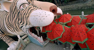 Ici, face à une canicule qui va jusqu’à faire suer la terre elle-même (voir cette fuite d’eau après l’extraction d’une clé encastrée dans du goudron), chacun tente de se désaltérer comme il peut, à commencer par ces deux protagonistes aux appartements voisins : d’un côté une jeune femme qui vole l’eau des toilettes publiques pour subsister, de l’autre un acteur de porno qui va jusqu’à se baigner dans les citernes d’eau de pluie sur le toit de l’immeuble. Mais très vite, la pastèque apparaît comme le substitut idéal à cette pénurie d’eau, d’autant plus facile à absorber pour les habitants de Taïwan que le prix de son jus s’avère moins élevé que celui d’une bouteille d’eau minérale – du moins si l’on en croit les journaux télévisés qui vont jusqu’à évoquer des concours de mangeurs de pastèque et de cracheurs de pépin ! Au-delà du simple « sorbet » à manger pour se rafraîchir, le fruit rouge en vient même à devenir la plus affolante des machines à fétichiser, tant il se retrouve ici utilisé de mille et une façons. Ainsi donc, outre cette utilité de néo-cunnilungus détourné que l’on évoquait plus haut, on le porte sur la tête comme un chapeau, on le conserve chez soi ou sur soi-même comme si c’était un animal de compagnie, on le cache sous le tee-shirt pour simuler une grossesse et un accouchement, et surtout, on met en valeur ses caractéristiques visuelles (écorce verte, chair rouge, graines noires) sur des parapluies pour des chorégraphies musicales bien plus folles et désinhibées que chez Jacques Demy.