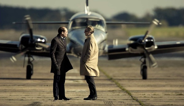 Pour la petite histoire, La Taupe n’est autre que le premier volet d’une trilogie de romans ayant en commun le personnage de Karla, agent invisible et insaisissable dévoue à la cause des soviétiques, concepteur d’un vaste réseau de taupes, et adversaire principal de George Smiley. Cet affrontement diffus entre Smiley et Karla (dont le visage ne sera jamais révélé durant le film), doublé d’une relation ancestrale qui tend à faire passer le premier pour un nouveau suspect dans l’enquête, se révèle être l’un des points les plus fascinants du récit en raison de la vie privée de Smiley, notamment le versant romantique qui unit celui-ci à sa femme et que Karla n’hésite pas à exploiter comme épicentre de la vulnérabilité de son adversaire. On évoquait précédemment l’attachement d’Alfredson à se focaliser sur la psychologie des espions, mais en réalité, il faudrait plutôt parler de « fêlures », ces hommes de l’ombre n’étant jamais aussi vulnérables que lorsque leurs sentiments viennent empiéter sur leur travail. L’originalité du film est justement de ne filmer pratiquement que des pincées (ou des montées) d’émotion dans un monde où celle-ci est sans cesse appelée à être bannie, et ce paradoxe suprême, déjà exploité dans le récent et excellent Espion(s) de Nicolas Saada, donne ici au personnage de George Smiley un atout inespéré pour triompher des faux-semblants et déchiffrer la vérité. En outre, l’un des éléments-clé de l’histoire, à savoir la relation adultère entre la femme de Smiley et l’une des têtes pensantes du MI6, sera la goutte d’eau qui fera déborder le vase des identités cachées (mais chut, encore une fois…).