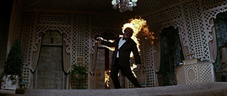 On ne résiste pas non plus à reconnaître la connexion avec le mythique Piège de cristal. En effet, une décennie avant le classique de John McTiernan, tout était déjà à l’œuvre dans La Tour infernale : le building gigantesque, la fête tragiquement interrompue, les déambulations non-stop dans les dédales vertigineux de l’immeuble, la tentative avortée de fuite par le toit, le crash d’un hélicoptère, les chutes dans le vide, sans oublier la présence d’un individu qui tente d’empêcher à tout prix le feu de lui ravir son statut du maître des lieux. La différence, c’est que ce dernier – joué par un Paul Newman irréprochable – ne peut que choisir la défense comme seule attaque, réduit à une posture de sauveteur dépassé et impuissant face à la progression de son ennemi dans un labyrinthe de verre. Rescousses et stratagèmes forment donc la matrice du scénario, ici épaulée par de foudroyants effets spéciaux qui n’ont pas pris une seule ride – revoir le film en Blu-Ray permet d’en prendre toute la mesure – et qui font grimper jusqu’au bout la sensation d’urgence. Face à cela, les caractères piégés au sommet de cette « tour de verre » (c’est le nom de l’immeuble) n’ont donc qu’à s’agiter le plus possible pour épouser cette montée de tension, et c’est bel et bien le facteur sentimental qui permet cela. On recense ici un grand nombre de relations amoureuses, avec tout ce que cela suppose de pépins conjugaux (Newman/Dunaway, Chamberlain/Blakely), de piments extraconjugaux (Wagner/Flannery) ou de romances en gestation (Astaire/Jones). Mais c’est bien l’inimitié entre William Holden et Richard Chamberlain qui pèse lourd ici. En effet, le promoteur et son gendre électricien, tous deux désignés comme les seuls vrais responsables du désastre, ne se renvoient pas leur culpabilité de la même façon : le second tente de se dédouaner par seul et unique souci de se libérer de l’influence du premier, tandis que ce dernier reconnait ses erreurs et s’isole dans l’abattement le plus complet dès l’apparition du premier cadavre en feu. Coincé en plein centre de ce tennis de culpabilité, le personnage de Paul Newman se contente de faire l’arbitre et de compter les… cadavres.
