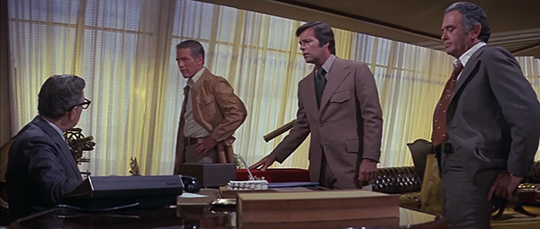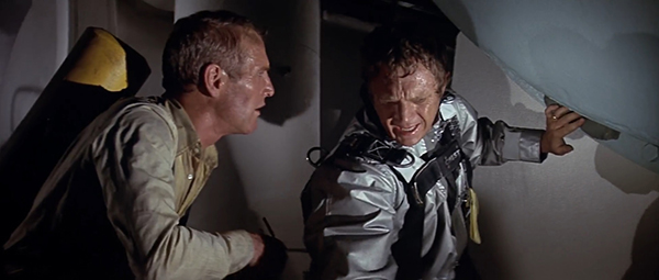 Tout le mérite de ce triomphe en revient au producteur Irwin Allen, intronisé roi du genre depuis L’Aventure du Poseïdon de Ronald Neame en 1972. C’est deux ans après ce premier gros succès – et surtout au moment même où le World Trade Center achève sa construction à New York – que le bonhomme se chope une folie des grandeurs carabinée. Son idée ? Acquérir les droits de deux romans intitulés The Tower et The Glass Inferno pour demander au scénariste Stirling Silliphant de les fusionner en un seul et même scénario, et réunir un budget colossal de 14 millions de dollars en engageant la crème de la crème – acteurs et techniciens – et en proposant à la Twentieth Century Fox de collaborer à part égale avec la Warner. Seul son désir de réaliser seul ce giga-spectacle rencontrera un mur, ce qui le poussera à se concentrer sur la réalisation des scènes pyrotechniques et à confier les scènes dialoguées à un solide artisan de la série B, John Guillermin, qui signa le puissant Rapture en 1965 et qui sombrera par la suite avec un minable remake de King Kong en 1976. Et pour ajouter encore au poids de la logistique, l’indécrottable Steve McQueen en profitera pour jouer les divas, exigeant de jouer le personnage le plus héroïque du film et d’avoir le même nombre de répliques que son partenaire starisé Paul Newman. C’est d’ailleurs là que l’on se permettra de relever le seul et unique grain de sable de cet engrenage maxi-friqué : malgré le charisme naturel et minéral de la star de Guet-Apens, le relief de ce pompier tenace égale celui d’une utilité narrative, donc à contre-courant de la logique émotionnelle qui irrigue tout le projet – c’est clairement Paul Newman qui domine tout le film là-dessus. Rien de bien gênant, ceci dit, puisque le triomphe critique et public sera au rendez-vous, inaugurant de ce fait une longue lignée de films du même style mais pas du même acabit.
