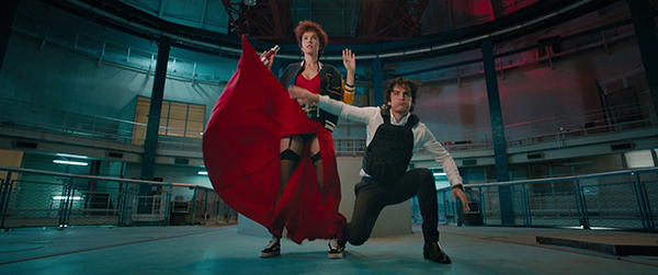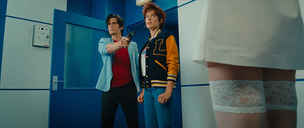 Ce choix intelligent permet déjà de mettre en adéquation le délire de la série animée avec la sensibilité de Philippe Lacheau pour un humour très orienté « cour d’école primaire ». En effet, comme l’avaient démontré ses récents Babysitting et Alibi.com (mais avec une finesse au plus bas niveau), tout se résume chez lui à des concepts de comédie potache, voire vaudevillesque, où l’épuisement du rythme et de la situation par le gag en cascade – jusqu’ici navrant trois fois sur quatre – tient lieu d’argument narratif à part entière. Le tempo comique était bel et bien là, mais la mécanique, déjà grippée par une absence de contrepoint qui la reléguait au rang d’un futile exercice de style, allait jusqu’à susciter la gêne par une orientation comique ultra-beauf qui se limitait à flatter les instincts les plus vulgaires. Les mauvaises langues diront que Lacheau aurait vu dans Nicky Larson une sorte de double rêvé de sa propre sensibilité de comique beauf, et c’est pourtant là que le film nous la met encore à l’envers. En effet, par le choix d’un cadre, d’un univers, d’une intrigue et même d’une mise en scène qui mettent un point d’honneur à fuir tout souci de réalisme, Lacheau se coule dans l’univers du manga comme un poisson dans l’eau, assimile à 100% la dimension d’un médium japonais qui a souvent fait son beurre sur un art de la transgression infantile, et utilise ses ressorts comiques les plus gamins et les moins subtils – dont un usage répété du quiproquo gay qu’une telle intrigue rendait inévitable – comme enjeux rythmiques du récit et non pas comme points de vue à défendre, ce qui fait toute la différence.