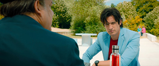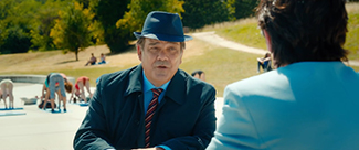 Certes, l’enfilade non-stop de péripéties burlesques se mange parfois le mur par manque de tact ou de finesse, comme en témoignent une sous-intrigue autour de la nymphomanie de Chantal Ladesou et une ultime punition infligée au vilain de l’intrigue qui gâche la fin du festin (pourquoi utiliser soudain l’homosexualité comme repoussoir total après avoir ri avec elle pendant une heure et demie ?). Mais à part ça, Lacheau tient haut la main son alliage d’hilarité joyeuse et de poésie déglinguée, allant même jusqu’à exploiter les fétiches les plus connus du manga (dont les corbeaux et les coups de marteau 100T sur la tête) pour trouer le récit via des parenthèses stylisées en accord avec la logique de l’univers. Et en matière de stylisation, c’est peu dire que le résultat nous scie la rétine, tant la maîtrise visuelle du cinéaste crée la rupture avec tout ce qu’il avait pu proposer jusqu’ici. Plus question pour lui de filmer les pitreries de ses personnages dans un cadre informe de found footage ou de vaudeville pécassien : ici, tout a été pensé en échelles et en valeurs de plan, traduites par un découpage qui prend son temps et qui ne surdécoupe pas à foison. L’esthétique flashy du film fait péter mille couleurs dans chaque scène, comme pour asseoir là encore sa révérence au manga, et donne ainsi à l’expression « personnage haut en couleur » une signification cristalline. Quant à l’univers en lui-même, l’astuce aura consisté à éviter de franciser l’univers du manga ou de singer l’exportation grossière : si une escale à Monaco constitue le seul repère géographique concret, Lacheau y dessine un monde intemporel, indéfini, coincé quelque part entre le quartier de La Défense de la fin des années 90 et l’ultra-modernité de l’architecture tokyoïte – les points de convergence sont légion entre ces deux pôles. Sur la direction artistique, nos yeux et nos oreilles dégustent donc ici un quasi sans-faute.