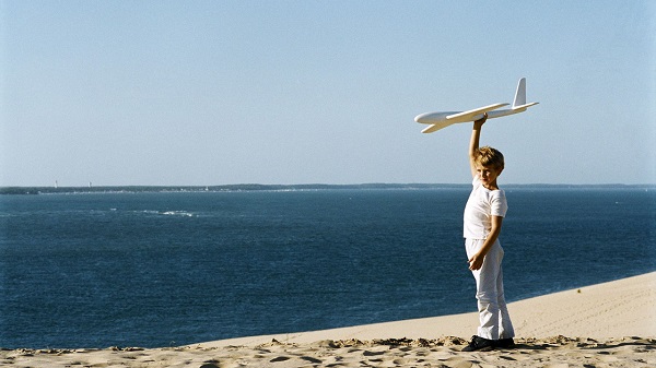 Là où Kahn se distingue avec brio, c’est dans sa façon de gérer l’immixtion du conte dans la réalité, que ce soit à l’échelle d’une scène entière ou d’un simple plan. A titre d’exemple, la longue scène d’infiltration dans la base aéronautique – qui ressemble de loin à un château moderne – frise la relecture du film d’espionnage à regard d’enfant, presque comme un jeu où déjouer les obstacles serait trop simple pour être vrai. L’inévitable scène de l’envol, ici traitée sur un mode onirique, inverse subtilement la place des étoiles par le biais de la nuit américaine – on regarde moins le ciel que les reliefs pyrénéens et les lumières de la ville et de la route. Lorsque le cinéaste laisse son protagoniste errer la nuit dans une forêt symbolique, il fait renaître une angoisse en lien avec les plus effrayants contes enfantins, avec cette végétation ample au sein de laquelle l’enfant paraît trop petit pour ne pas se perdre et ce « grand méchant loup » qui tente de piéger l’enfant en se faisant passer pour un parent. Même le climax final, qui donne à la Dune du Pilat un statut d’éden illusoire au bord de la mer, touche au sublime par le biais d’un deal frontal entre la mort et le réel, avec une mère aimante qui prend le relais d’un avion aux pouvoirs épuisés et d’un messager éphémère reliant son fils à son mari disparu. Des moments magnifiques, d’autant plus acceptables en tant que tels en raison d’une inquiétude sourde – l’un des partis pris favoris de Kahn – qui aura jusqu’ici bel et bien pris racine. Un jouet aérien dont le blanc immaculé et l’absence de jointures en font presque un fantôme, un réel qui s’effrite lorsque le fantastique laisse place à l’angoisse (la crise d’hystérie de l’avion qui « attaque » la maison, l’enfant qui grimpe sur le toit en se croyant capable de voler avec son jouet, la mère qui se réveille en voyant son fils menaçant au pied de son lit…), une nuit américaine qui redessine la nuit du réel en espace onirico-cauchemardesque… Cette cinégénie de l’inquiétude devient le sel d’un conte aussi poétique que bizarre, capable d’abriter de fascinantes zones d’ombre sous un écrin d’une simplicité désarmante, et conférant ainsi à L’Avion une singularité en parfait accord avec le style de son créateur. Si s’adresser à un jeune public avec pureté et sans propension à la mièvrerie relève de la haute voltige, Cédric Kahn n’a pas démérité.