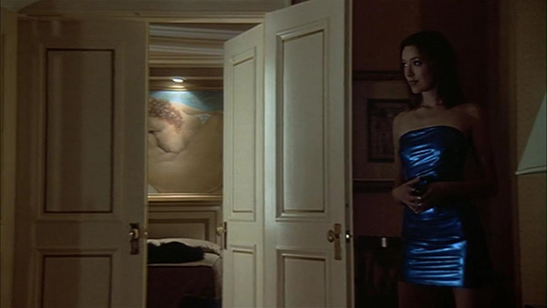 Ce qui intéresse ici Wayne Wang ne se limite pas à révéler les fantasmes d’une Amérique hypocrite qui ne dit pas ce qu’elle pense mais qui n’en pense pas moins. Certes, il y aura bien une ou deux visions un chouïa scandaleuses qui en feront bondir plus d’un, à l’image de cette stripteaseuse stimulant son vagin avec une sucette (est-ce un clin d’œil coquin au Lolita de Kubrick ?) ou d’un fantasme de fellation à base d’alcool et de glaçons (on ne voit rien mais on devine tout). Il n’en reste pas moins que le regard de Wang ne se veut ni vulgaire ni racoleur ni dépravé. Ici, le sexe n’est juste qu’un outil d’emprise dont se sert à loisir un autre démon, plus vrai celui-là, à savoir celui de l’argent. Les belles tranches de vie dont Wang et son complice Paul Auster (grand écrivain de renom et ici à nouveau coscénariste) s’étaient fait les ambassadeurs avec Smoke et Brooklyn Boogie ont ici laissé la place à du vide où la matière qui circule vraiment n’est jamais celle que l’on imagine. Chacune des conversations prenant place dans cette chambre d’hôtel (luxueuse en l’état, mais rendue déprimante par la granulosité de l’image) sont ici d’une fadeur totale, et bien évidemment, c’est fait exprès. Comme si les personnages, en faisant chacun l’effort de creuser l’âme de l’autre, étaient condamnés à rester chacun dans leur bulle. Mais dès qu’il est question d’argent, les fêlures sont refoulées au profit d’une énergie interne soudain ravivée. La cible réelle de Wang se clarifie alors : une vision contemporaine du monde où toute forme d’échange – surtout sexuel ou sentimental – ne se résume qu’à un flux monétaire à sens unique. Ce que l’on pouvait appeler un « échange de liquide » est donc passé du sens propre au sens figuré – le poids du sexe est écrasé par celui du capital. Et même si Wang n’égale jamais le degré d’acuité symbolique dont fera preuve Steven Soderbergh huit ans plus tard avec Girlfriend Experience, il s’avère suffisamment fin et impudique à la fois pour rendre ce propos tangible.
