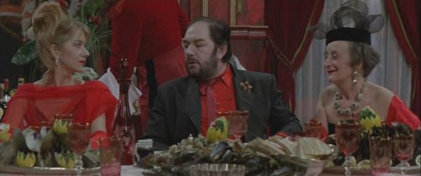 Les enjeux sont tous clairement posés, l’unité de lieu également (à peine quatre ou cinq décors), ne reste alors que l’étincelle qui va tout faire exploser : la découverte par Spica de la relation amoureuse entre Georgina et Michael. C’est alors que Peter Greenaway élève la violence du propos vers un stade plus avancé, faisant de ce huis clos feutré une parabole hallucinante d’une société absurde et pourrissante, à l’image de cette cargaison de nourriture avariée, rongée par les vers et les mouches. Et pour ce faire, le cinéaste élabore dans un premier temps un récit métronomique et une réalisation destinée à créer le dégoût comme la fascination.