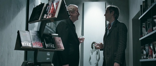 Mieux encore : à de nombreuses reprises, Pinter s’amuse même des fausses coïncidences pour fausser notre suspension d’incrédulité. À son arrivée dans la bâtisse, Tindle demande un verre de scotch à Wyke, et un plan nous révèle que le verre était déjà prêt avant son arrivée (étrange…). Plus tard, si l’on regarde la liste des livres affichés sur le mur de Wyke, l’avant-dernier livre se nomme Double Scotch (Tindle boira ici deux verres de scotch successifs) et le futur livre à paraître s’intitule The Smiling Man (mais qui sera le dernier à rire à ce petit jeu du chat et de la souris ?). Enfin, la narration du film tire son avantage de sa vitesse : le duel relativement posé et maîtrisé d’autrefois s’est ici mué en une joute verbale sans temps mort, où l’élégance du phrasé est ici vite écrabouillée par l’ironie de phrases assassines, balancées presque aussi vite qu’une balle de squash. Cela ne rend que plus désorientant ce virage à 180° du récit vers un mélange de tragi-comique et de bouffonnerie où le sentiment, surtout amoureux, sert à humilier – et donc à tuer – l’adversaire. Dans ce second acte, Branagh prend ainsi le risque de paraître trop forcé sur l’outrance du jeu sexuel (voir Michael Caine affublé de bijoux de femmes est plus grotesque qu’autre chose), mais s’en tire par une propension à utiliser le too much pour dissimuler le vrai enjeu du duel. Jusqu’à un plan final très pictural, à la manière d’une œuvre d’art moderne, où le cadavre d’un amant rêvé dans une cage d’ascenseur dit tout de l’inconscient tourmenté du seul personnage encore en vie.