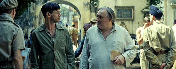 Ce film est une jungle. Un décor touffu et inconnu où l’on ne peut qu’avancer, où l’on ne peut que se perdre, avec le danger qui serpente sans chercher à se manifester. Mais à force de tenter d’en extraire quelque chose, que ce soit une vérité cachée ou une sensation précise, on finit par perdre ses repères. En gros, plus on avance, plus on fait du surplace. Le champ lexical de l’errance tropicale dans un contexte tourmenté (guerre ou désastre), on ne va pas le presser ici à nouveau : de La 317ème section à Vinyan en passant par Apocalypse Now et Tropical Malady, les piliers les plus évocateurs de cette démarche ont déjà donné tout leur jus. De ce fait, il n’est pas simple de pénétrer dans Les Confins du monde. Il est même encore moins facile de cibler quel serait le désir de continuité avec les précédents – et prestigieux – opus de son brillant et singulier cinéaste. Finalement assez loin de cette hypothétique fin de trilogie avec Gérard Depardieu (entamée avec Valley of Love et poursuivie avec The End), le résultat n’a clairement rien à voir avec le parti pris récurrent de Guillaume Nicloux de transfigurer un acteur vedette et de bâtir une fiction disruptive autour de sa présence. Reste qu’une autre habitude du cinéaste n’a en revanche pas disparu, à savoir celle de viser moins la narration linéaire que la mise en scène de motifs obsessionnels signant le délitement du personnage en question. Avec un soldat ivre de vengeance et plongé dans une guerre coloniale – celle d’Indochine – sur le point d’envoyer ses dernières cartouches avant l’indépendance, c’est dire si la pointure de la sandale semblait idéale. On aura hélas tôt fait de se rendre compte qu’elle était un peu trouée, rendant cette marche dans la jungle un tantinet ardue.