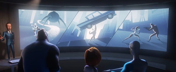 Les Indestructibles 2 pourraient se voir de la même manière. Bien qu’il ait fait ses preuves, sa stature professionnelle ne semble plus si certaine et on imagine que l’égo en prend un coup. C’est probablement là qu’est le cœur de cette idée d’inverser les rôles entre Bob et Helen. Le concept a une apparence très convenue et laisse se profiler un fond moralisant. Néanmoins, il va prendre une direction différente. Le problème de Bob n’est pas de se retrouver prisonnier d’un rôle d’homme au foyer qu’il verrait comme un gâchis de son talent. Cela voudrait dire qu’il n’a pas appris grand chose du premier film. Son souci tient à la frustration de ne pas être à la hauteur de ce rôle. Comme il l‘exclame en arrivant au comble de l’énervement, il est Monsieur Indestructible et il se doit en conséquence d’être super en tout point. Il ne peut pas être juste un homme au foyer. Il doit être le meilleur des hommes au foyer. Il se refuse à l’imperfection, ce qui en soit tient de l’impossible de par la multitude de variables régentant la vie de famille. Il omet trop sa potentielle faillibilité de super-héros. En ce sens, on peut considérer comme heureux que c’est Helen qui est élu pour jouer les super-héros en public. À l’exigence maladive de Bob, Helen incarne un versant plus consciencieux et terre-à-terre. Elle est plus capable d’appréhender ses responsabilités plutôt que de s’en délecter (ce qui ne l’empêche pas de redécouvrir les joies procurées par l’héroïsme). Cependant, ça n’est pas pour ce trait de caractère qu’elle a été privilégiée à Bob.