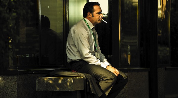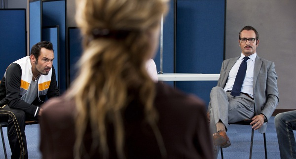 Cependant, si la porte d’entrée et la porte de sortie suscitent de fausses attentes lorsqu’on les franchit, les autres pièces de l’appartement offrent un contenu très surprenant. On passera assez vite sur Lolita, segment assez basique d’Eric Lartigau, où un Gilles Lellouche en mode « orthodontiste-qui-a-la-bague-au-doigt » subit le quotidien d’une pipelette de 19 ans (Clara Ponsot) dont il s’est amouraché, avec qui il rêve d’une relation sérieuse alors que celle-ci ne pense qu’aux expériences de l’instant présent, sans attaches ni planning. Si l’on excepte l’apparition tordante de Dujardin en punk ringard et un final qui confronte son pathétique héros à son âge comme à son ridicule, c’est ventre mou à tous les étages, le tout avec une réalisation assez uniforme… Le segment de Michael Hazanavicius, en revanche, se révèle infiniment plus couillu et intéressant. Intitulé La bonne conscience, il nous montre un cadre loser (Dujardin) prêt à tout pour tirer un coup lors d’un séminaire d’entreprise. Sauf que, dans cet hôtel de province où tout transpire la moquette propre et le service faussement satisfait, difficile de se la jouer branché et cool quand on est marié, maladroit, vecteur de blagues aussi chiantes que pas drôles, et gland ridicule face à un collègue dragueur de compétition (Lellouche). Seule option de secours : draguer la collègue la moins attrayante de la boîte (Isabelle Nanty), à trois heures du matin, avec des arguments plus minables tu meurs. Et quant on sait qu’Isabelle Nanty n’est autre que celle qui a autrefois imposé Jean Dujardin comme acteur comique potentiel (sa « marraine dans le métier »), la ridicule séance de drague en devient jouissive tout en nous laissant avec un sourire crispé sur le visage.