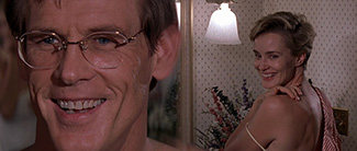 Il est capital de saisir que le personnage de Max Cady n’a rien d’un psychopathe lambda, mais tout d’une menace abstraite dont l’aura démoniaque ne cesse de muter par la force d’un simple cadrage ou d’un simple détail. Lorsqu’il apparaît pour la première fois à l’écran, c’est au travers d’une séance de pompes qui met en évidence son corps sculpté et ses tatouages bibliques (les mots truth et justice mis en balance), ce qui fera dire plus tard au procureur « Ce type, je ne sais pas s’il faut le regarder ou le lire ». Un peu plus tard, lorsqu’il apparaît à la famille Bowden, c’est déjà en tant qu’« intrus » : il est une ombre qui leur gâche le plaisir d’un film au cinéma et qui semble surtout s’incruster sur la comédie familiale qu’ils regardent, allant même jusqu’à recouvrir la piste sonore avec son rire diabolique. Et quand il se confronte enfin à la jeune fille Bowden (incarnation de la pureté virginale), c’est d’abord au téléphone dans une posture de chauve-souris (cadré la tête à l’envers avec les cheveux hérissés du démon !), puis en Grand Méchant Loup qui sort de la forêt noire pour s’abattre sur le Petit Chaperon Rouge dans la maison de Hansel & Gretel (une scène de théâtre où le Mal manipule et pervertit la jeune fille pour lui faire perdre toute confiance envers sa famille). Ce dernier détail est peut-être le plus gros apport au film original, qui laissait à l’état d’ébauche la fascination sexuelle de l’ex-taulard pour la progéniture de l’avocat. Scorsese va ici bien plus loin en faisant évoluer la relation vers quelque chose de plus tordu, de plus érotique, et choisit de l’étendre aux autres personnages féminins. Ainsi donc, Cady saura manipuler une femme adultère (Illeana Douglas) pour finalement la soumettre à un viol quasi cannibale, et visera aussi l’épouse Leigh Bowden (Jessica Lange, actrice experte en ambiguïté psy), en l’état si sexuellement frustrée qu’elle entamera peu à peu une étrange danse entre fascination et répulsion avec Cady, jusqu’à une confrontation finale hautement malsaine.