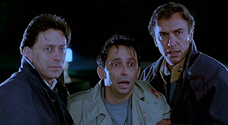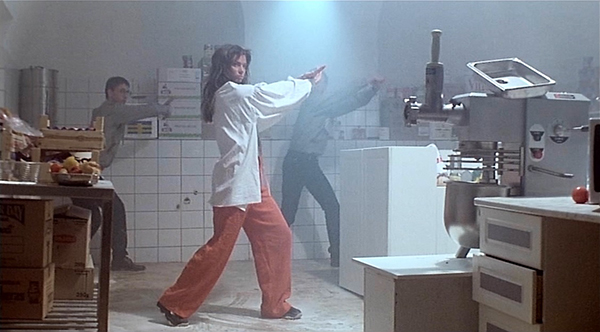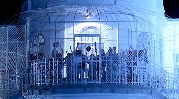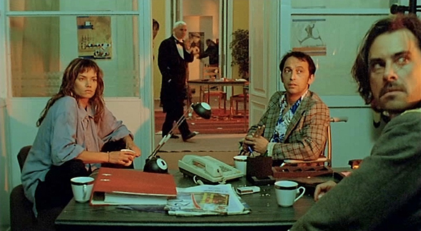On s’était permis de citer plus haut le navet crypto-humaniste de Patrick Sébastien, et ce n’est pas pour rien : le défilé de malades mentaux s’avère encore plus gratiné que chez l’animateur paillard des cabarets de France 2. Ici, nous avons donc un écholalique mal rasé, une danseuse nymphomane, un militaire dégénéré (joué par un Alain Figlarz qui inaugurait ici sa longue liste d’interprétations de brutes épaisses et caricaturales !), une pseudo-Jeanne d’Arc encore plus illuminée que la vraie, trois Bee Gees avec une planche de surf, des jumeaux binoclards, un joueur de cornemuse, un trouillard peroxydé, un psychopathe amateur du coup de marteau, un type en smoking qui cherche du feu, et même une grand-mère sadique ! Bref, une belle bande d’allumés qui ne cessent d’élever le taux de décibels dans les lieux, décuplant de ce fait le stress et l’hystérie de notre quatuor d’antihéros. A l’extérieur, le RAID entoure le bâtiment, mené par un Bernard Farcy alors en pleine période post-Taxi qui va perdre très vite le contrôle de la situation. Devant le film, en revanche, c’est le point d’interrogation. Tout porte à croire que l’on assiste à un nouveau prototype d’anti-cinéma, à une sorte de jeu nonsensique où le fou aurait réussi à mettre le roi échec et mat en se torchant avec la règle du jeu. Désireux de créer de l’inattendu et du mélange de genres soi-disant pour se mettre au diapason de la vie elle-même (intention louable en soi), Gérard Cuq a cependant oublié un détail capital : la règle du « tous les coups sont permis » se doit d’être conditionnée par un minimum de velléités artistiques, ici niées ou absentes. D’où l’impression de le voir se tirer lui-même une balle dans le pied.