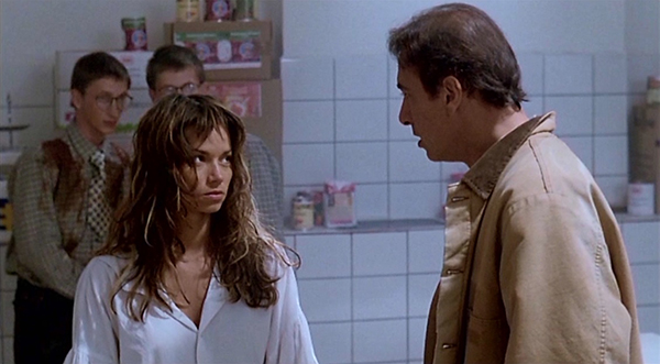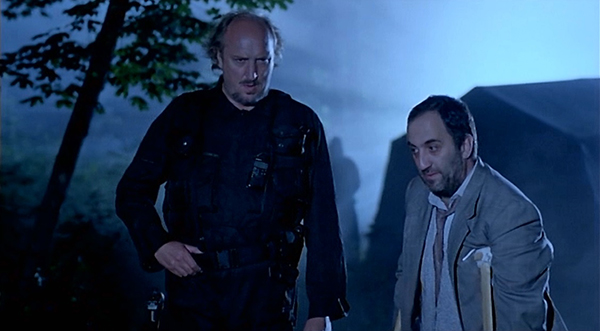 Côté acteurs, la sublime Ingrid Chauvin – ici dans son unique rôle au cinéma – ne peut espérer surnager d’un parterre de tarés en roue libre : qu’elle soit saoule, hystérique, proto-bouddhiste (on la voit soudain faire du tai-chi avec deux zinzins !) ou amazone badass avec une perruque, l’actrice ne parvient jamais à donner un semblant d’évolution à son personnage d’agent de la paix entraînée malgré elle dans le chaos. Au moins, le seul intérêt de son rôle consiste à rappeler au spectateur quel est le sien : finir gagné par la folie de l’ensemble à force de le côtoyer avec autant de proximité. C’est là que, mine de rien, Les Percutés peut susciter un début d’ivresse, sous couvert d’avoir un cerveau en condition et un sérieux degré de tolérance à la cacophonie. On peine en tout cas à relever un autre exemple de polar français atteint par une telle folie. Peut-être serait-on tenté de songer au Dobermann de Jan Kounen, mais ce dernier avait pour lui une mise en scène et un découpage très BD-like, soutenu par un ton destroy sans ambiguïté et une galerie de personnages improbables en accord avec le sujet. Gérard Cuq, lui, ne vise qu’une folie à sens unique, dénudée et traitée sans recul, mais sans que l’on sache si elle est censée insuffler un vrai vent libertaire ou servir au contraire de mise en alerte. La réponse se situe sans doute entre les deux, à l’image de ce générique de fin où, sur fond d’une très envoûtante chanson, le flic joué par Bernard Farcy semble dépassé par tout ce bazar, hésitant entre la consternation et le fou rire nerveux. Il n’est pas le seul. Bonne chance, en tout cas, pour ne pas finir totalement fou en sortant de cet ovni.