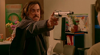 Côté acteurs, la sublime Ingrid Chauvin – ici dans son unique rôle au cinéma – ne peut espérer surnager d’un parterre de tarés en roue libre : qu’elle soit saoule, hystérique, proto-bouddhiste (on la voit soudain faire du tai-chi avec deux zinzins !) ou amazone badass avec une perruque, l’actrice ne parvient jamais à donner un semblant d’évolution à son personnage d’agent de la paix entraînée malgré elle dans le chaos. Au moins, le seul intérêt de son rôle consiste à rappeler au spectateur quel est le sien : finir gagné par la folie de l’ensemble à force de le côtoyer avec autant de proximité. C’est là que, mine de rien, Les Percutés peut susciter un début d’ivresse, sous couvert d’avoir un cerveau en condition et un sérieux degré de tolérance à la cacophonie. On peine en tout cas à relever un autre exemple de polar français atteint par une telle folie. Peut-être serait-on tenté de songer au Dobermann de Jan Kounen, mais ce dernier avait pour lui une mise en scène et un découpage très BD-like, soutenu par un ton destroy sans ambiguïté et une galerie de personnages improbables en accord avec le sujet. Gérard Cuq, lui, ne vise qu’une folie à sens unique, dénudée et traitée sans recul, mais sans que l’on sache si elle est censée insuffler un vrai vent libertaire ou servir au contraire de mise en alerte. La réponse se situe sans doute entre les deux, à l’image de ce générique de fin où, sur fond d’une très envoûtante chanson, le flic joué par Bernard Farcy semble dépassé par tout ce bazar, hésitant entre la consternation et le fou rire nerveux. Il n’est pas le seul. Bonne chance, en tout cas, pour ne pas finir totalement fou en sortant de cet ovni.