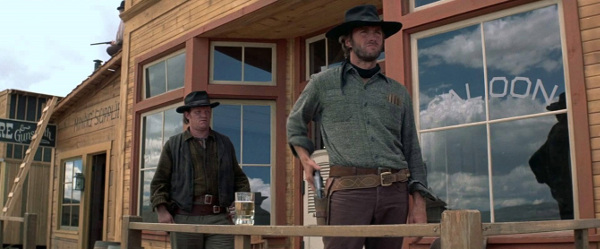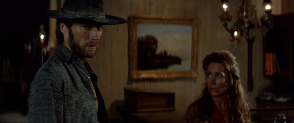 Là où Leone faisait autrefois de « l’homme sans nom » une figure mythologique et porteuse d’une justesse brute de décoffrage, Eastwood enfonce le clou et franchit la ligne : doté d’un charisme animal, son « étranger » sera un être silencieux et reptilien, capable de s’incarner d’un coup sec en exterminateur brutal et non dénué d’une certaine forme d’arrogance. Ce qu’il veut, il le prend sans dire un mot, allant même jusqu’à employer la force, et dès que les villageois voient en lui l’homme providentiel qui pourra les protéger d’un trio de bandits, il n’hésite pas à poser ses conditions, obligeant ainsi les habitants à lui accorder les pleins pouvoirs, à faire de leur souffre-douleur (un nain nommé Mordecai) le shérif et le maire de la ville, et pour couronner le tout, à repeindre la ville en rouge sang pour la rebaptiser « Hell » (« L’enfer »). L’homme sans nom est devenu un homme sans « oui », et aucune dérogation ni contestation possible ne seront acceptées pour dévier d’une route qu’il semble avoir tracée.