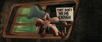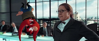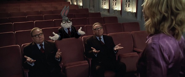 Face à des créatures de cartoon à qui il s’agit de tenir la dragée haute coûte que coûte, aucune autre option ne s’impose aux acteurs que celle de changer leur fusil d’épaule, optant moins pour la nuance que pour un sens aigu du too much. Ce jeu cartoonesque devait certes se caler dans le mood siphonné des Looney Tunes, mais donner surtout la sensation de voir le monde réel revu et corrigé par ce même degré de folie, un peu comme si l’ensemble devait basculer sans prévenir du film live au cartoon à l’état pur. Sans surprise, c’est à Steve Martin que ce cinglé de Joe Dante confère le soin de repousser les limites de la pantomime surjouée. Et là, on manque clairement de mots pour décrire le caractère over the top – aussi revendiqué soit-il – d’une telle interprétation. Capable de faire passer le Dr Denfer d’Austin Powers pour un parangon d’austérité bergmanienne, ce super-vilain ridicule opère un violent contraste avec tout autre humain prompt à rentrer dans le cadre, en particulier le meilleur interprète de James Bond à qui revient ici l’honneur de singer le super-espion beaucoup trop sobre et protocolaire pour remplir sa mission dans un monde dont la logique et les lois ont quitté la stratosphère. Point de repère à repérer dans le monde des Looney Tunes passent à l’action pour des êtres humains qui ne sont pas « animés », et par le biais de cet adjectif-là, on glisse un double sens qui éclaire tout. Les humains peinent ici à égaler l’énergie interne des Looney Tunes parce qu’ils finissent par devenir eux-mêmes les intrus de leur propre monde, refaçonné par autrui animé d’une vraie folie (et par des fous du gag). D’un bout à l’autre du récit, leurs émotions sentent le fake (quand elles n’ont pas l’air trop scénarisées), leurs réactions sont forcées (parce qu’il n’y a pas d’autre logique à suivre) et leur interprétation bute sur cette surface où les toons glissent tels des pros de la transgression. Un principe qui se voit d’ailleurs parfaitement résumé dans ce court plan fixe où Daffy pénètre dans un décor peint en deux dimensions afin d’échapper à un humain qui se mange le mur en essayant de le suivre. Reste que si les Looney Tunes font ici la loi, la compétition persiste aussi entre eux. Bugs Bunny a une carotte d’enfer et Daffy Duck déballe un Maxi Best Of de son incontournable registre de râleur agité, mais en fin de compte, c’est le second qui gagne par KO en s’imposant comme le vrai héros du film.