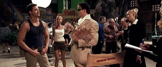On en oublierait presque d’évoquer ce que le film prétendait incarner, à savoir une satire insolente d’Hollywood par un Joe Dante que l’on imagine avide d’en découdre et de mordre la main qui le nourrit. Osons affirmer que croire d’entrée à cela est un bon moyen de tomber dans le panneau. Dante s’avère bien plus malin qu’on aurait pu le croire dans la mesure où son propos, a priori plus taquin que réellement corrosif, fait d’abord mine de se couler pépère durant les premières scènes avant de s’évaporer au profil du pur récit d’aventure. Ce superbe travelling latéral sur des tables de la cantine du studio Warner nous donne ainsi ce que l’on pense attendre d’un tel film : Porky Pig et Speedy Gonzales se lamentent sur le politiquement correct qu’on leur impose désormais d’incarner, Sammy et Scoubidou engueulent Matthew Lillard pour les avoir ridiculisés dans une adaptation live de triste mémoire, et une executive-woman incite Bugs Bunny à changer définitivement de registre. Sans parler des pratiques d’un studio à fond dans l’idiocratie : ici, on remake L’Arme fatale pour les marmots de la crèche (les deux flics sont des bébés !), on vire les exécutifs au premier faux pas accidentel (à moins qu’ils aient déjà dépassé le milliard au box-office) et les stars sont des divas tout juste bonnes à laisser leurs sosies cascadeurs faire tout le boulot à leur place (Brendan Fraser se livre à un joli numéro d’autodérision). Que tout ceci prenne la tangente à la fin du premier tiers ne doit pas nous tromper sur la position d’entriste que Dante adopte jusqu’au bout. Que ce soit pour se jouer du placement de produit au détour d’une scène ou pour récupérer in extremis sa fibre satirique par un effet de mise en abyme, son numéro d’équilibriste tord les ficelles de la commande avec un aplomb évident, et ce sans jamais faire défaut à l’énergie stupéfiante de son découpage. Comme quoi si ce projet lui a échappé, alors il y a quelque chose qui nous échappe.