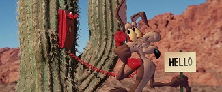 Alors certes, dans un rollercoaster aussi généreux, la crainte d’une grosse gamelle ou d’en faire trop par excès de zèle n’est jamais à exclure. On reconnaîtra ainsi qu’à l’image d’un duel final Bugs/Marvin appuyant pour la énième fois sur le bouton Star Wars, l’abus de clins d’œil cinéphiles ne fait pas toujours pencher la balance du bon côté. En témoignent ce détournement de la scène de la douche de Psychose qui fait pièce ajoutée en plus d’avoir été monté par un stagiaire (chaque raccord de regard sur Jenna Elfman sonne vraiment faux) et cette tentative de sauvetage ramollo sur la tour Eiffel qui ferait passer Dangereusement vôtre pour du Michael Bay. Reste que cette sensation d’une mascarade qui ne prend pas toujours va quelque part de pair avec la distance ironique voulue par Joe Dante. C’est par le biais du mauvais goût (le bon) de l’effet spécial qu’il devient possible d’acidifier et de cannibaliser le mauvais goût (le pas bon) du monde réel, ce qui tend à faire des Looney Tunes passent à l’action un bâclage revendiqué, un parasitage malin de la commande hollywoodienne, un goût de l’excès destiné à toucher du doigt le point de non-retour quitte à finir soi-même explosé en mille morceaux sous la contrainte. Au fond, ce petit montage ci-dessous des malheurs de notre Coyote adoré résume bien la position de sale gosse qui colle à la peau de Joe Dante : même sous-payé par les gars du dessus, même chargé d’une tonne de TNT méta qu’il fait sauter sans réfléchir, même placé aux commandes d’un très gros engin dont on lui saborde salement la mécanique, il garde malgré tout le sourire quand le grand boum lui tend les bras. Encore plus toon que les vrais, ce cher Joe…