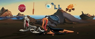 A ce titre, deux points d’orgue sont à relever dans cette narration infernale à plus d’un titre. D’abord une courte excursion de nos quatre héros dans un espace-temps invisible en plein désert d’Arizona, où la fameuse Zone 51 révèle sa nature de fantasme voué à dissimuler une authentique « Zone 52 » peuplée de toutes les créatures fantastiques imaginées par le 7ème Art. Dans ce laboratoire secret s’active alors la cohabitation désintéressée et bordélique de plusieurs régimes d’image et de citations : la couleur et le noir et blanc, le carton-pâte et la 3D, l’humain et le cartoon, le terrestre et l’extraterrestre, Roswell et Planète interdite, le sérieux et la distance, le réel et le cinéma. Bref, un espace-temps inédit où, le temps d’une scène, toutes les « formes » au sens large cohabitent sans effet de distinction, comme si quelqu’un mettait soudain sur pause la confrontation vénère entre humains et toons. Du moins avant que l’excursion suivante, située en plein musée du Louvre, ne réactive tout à coup le conflit animé en offrant au film sa scène la plus ahurissante : Daffy et Bugs qui voyagent de tableau en tableau pour échapper à cet indécrottable flingueur compulsif d’Elmer Fudd. Les voir pénétrer les peintures les plus célèbres et subir de plein fouet l’effet des techniques picturales sur leur nature de créatures dessinées est un régal : le surréalisme gluant de Dali, l’expressionnisme hurlant de Munch, le postimpressionnisme kitsch de Toulouse-Lautrec et le pointillisme minutieux de Seurat servent alors un savant jeu de contamination réciproque entre la citation et l’image, chacune cessant dès lors d’être « à plat » pour devenir une forme mutante qui auto-commente l’autre avec malice. Petit détail à relever : il n’y a pas un seul personnage non animé à l’œuvre dans cette scène. Preuve encore que le facteur humain n’a pas ici voix au chapitre.