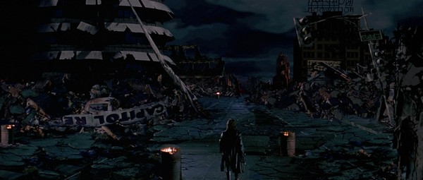 Film-charnière dans la carrière de son auteur, Los Angeles 2013 n’est au fond ni une suite ni un remake de New York 1997. Il en est plutôt le descendant, le rejeton, le bâtard cynique qui regarde le passé avec amertume et qui observe le futur avec désintérêt. Sans doute parce que Carpenter lui-même, déjà déprimé à l’époque par une décennie d’échecs au box-office, n’avait accepté de tourner le film qu’en raison de l’insistance monstrueuse de Kurt Russell – ce dernier rêvait tellement de cette suite qu’il s’impliqua dans son écriture et sa production – et du soutien de sa productrice attitrée Debra Hill. Mais le cœur n’y était plus, et depuis le pic de cynisme qui inondait les visions cauchemardesques de L’Antre de la folie, la colère de Carpenter contre une Amérique de plus en plus bien-pensante s’était teintée de lassitude. Faire un film qu’il ne souhaitait pas faire ne pouvait qu’accentuer celle-ci, et cela se ressent à première vue dans les choix narratifs. Cette vision de Los Angeles, influencée autant par les émeutes de 1992 que par le séisme de 1994, décalque ainsi l’île-prison de Manhattan du premier film, isolée socialement du reste du pays et devenue le néo-Alcatraz de tous ceux qui rejettent le totalitarisme ambiant. Pour le reste, en vrac, Snake vit là encore un countdown mortel et une capture au début du second acte, le sous-marin remplace le planeur, les combats de gladiateurs ont été troqués contre une partie de basket « à mort », le sournois « agent des stars » joué par Steve Buscemi est calqué sur le taxi autrefois incarné par Ernest Borgnine, la paumée Valeria Golino duplique la tueuse Adrienne Barbeau, le guérillero anarchiste Georges Corraface reprend presque tous les traits d’Isaac Hayes, une télécommande occupe ici la même utilité narrative que la cassette audio du premier film, et pour couronner le tout, Carpenter pousse le mimétisme jusqu’à recycler des scènes entières du film originel. Le cinéaste a-t-il voulu inclure lui-même son aveu d’échec dans le film, histoire de torpiller cette idée d’un produit taylorisé dont on réclamerait toujours une part de plus ? Faux, bien sûr. Ayant pris acte de l’industrialisation bornée d’Hollywood, Carpenter accouche ainsi d’un « plat réchauffé » avec l’indigestion pure et simple en guise d’objectif.