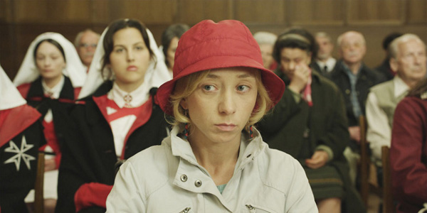 Les lents zooms avant, autre motif visuel marquant du film, semblent eux aussi signaler que quelque chose de mystique se passe ou est en passe d’arriver. Celui qui ouvre le film dans le restaurant où dîne le groupe, centrant progressivement le cadre sur la silhouette frêle de Christine, ne matérialiserait-t-il pas l’élection divine de ce personnage comme « future miraculée » ? Ceux, pénétrants, sur le personnage de Sœur Cécile (qui dira plus tard à Christine avoir vu en rêve sa guérison miraculeuse) ou celui de Frau Hartl, la vieille dame qui partage la chambre de Christine, ne nous indiquent-ils pas que ces femmes perçoivent quelque chose chez l’héroïne et anticipent le miracle ? Quoi qu’il en soit, le zoom a ici valeur de pénétration dans un autre domaine que celui de la simple normalité, comme si, par ce léger mouvement, la caméra perçait une surface superficielle et invisible des choses pour nous en révéler le caractère mystique. Rien d’autre ne révèle la moindre tentative de Jessica Hausner de figurer le divin. La cinéaste dit s’être au moins inspirée du Ordet de Dreyer (1955) pour une chose : le bannissement de tout éclairage excessif, de toute source lumineuse, naturelle ou non, pouvant évoquer une lumière divine et faire ainsi potentiellement sombrer le film dans le ridicule de la littéralité. La représentation, la plus sobre possible, qu’elle fait du miracle correspond au regard qu’y posent, de manière surprenante, les dignitaires religieux qui demandent bel et bien une expertise par des médecins (si une guérison ne dure pas, elle ne saurait être miraculeuse, pensez-vous !) et surtout l’héroïne.