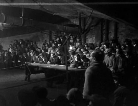 Lang donne une grande importance à cette peinture du quotidien de la classe laborieuse. Il ne s’agit pas seulement de créer, par l’attention aux détails, un décalage par rapport à l’intrigue meurtrière dans lequel le suspense puisse s’engouffrer. La raison à cette attention, c’est surtout que le cœur du film ne se situe pas tant du côté de la série de meurtres d’enfants – dont on ne voit qu’une partie – que du côté des témoins de ces crimes, du côté du corps social, comme nous l’indique le sous-titre original du film, « Une Ville recherche un Criminel » (« Eine Stadt sucht einen Mörder »). Ce sont bien les mécaniques sociales qui sont à l’œuvre dans le dispositif de la comptine de l’ouverture ou qui façonnent les attitudes des personnages, que Lang a une manière de typer en quelques secondes (la direction d’acteurs accentue l’expression gestuelle) ; ce sont elles qui aboutissent à la fondation d’un « syndicat des malfrats » ou à la création d’une « bourse des mendiants » (on y suit le court du rosbif !) saisie, en un seul plan-séquence étourdissant, comme une version souterraine de la société marchande.
