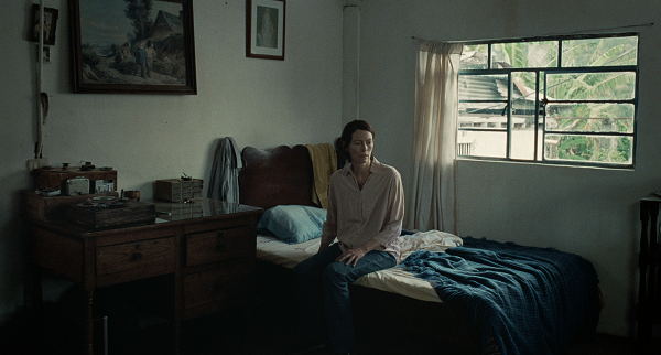Comment faut-il justifier le fait qu’après deux décennies à tourner dans sa Thaïlande natale, Weerasethakul ait soudain opté pour un déplacement géographique vers la Colombie, qui plus est avec des acteurs professionnels et non thaïlandais ? Quand bien même la présence d’une dictature toujours plus forte dans son pays d’origine aurait pesé lourd dans la balance, on ressent ici moins l’envie d’un déracinement de son cinéma que celle d’une (en)quête mémorielle qui se construit par le déplacement géographique. Preuve en est que les motifs-clés du cinéaste répondent à l’appel (la maladie, l’hôpital, le sommeil, les cours d’aérobic, le double, l’animal, la jungle tantôt urbaine tantôt végétale…) de même que le rythme lancinant de la narration ne s’est pas évaporé, à ceci près que l’apparition de l’inconnu n’obéit plus au même schéma qu’avant. Il suffit de repenser à la scène la plus inoubliable de la carrière du cinéaste thaï, à savoir ce dîner nocturne au début d’Oncle Boonmee qui montrait un fantôme translucide et un Chewbacca aux yeux rouges s’inviter chacun à leur tour à la table familiale. Chez Weerasethakul, les morts et les vivants investissent le réel sans distinction de place (voir ce cadrage inaugural de la table qui révélait très explicitement deux chaises vides), et l’inconnu – ici le surnaturel – a le don de surgir en douceur, tout juste en troquant l’effroi contre un léger effet d’étonnement. Ce n’est plus le cas dans Memoria, opus d’un renouveau déguisé en rupture, où l’étrangeté ne coule plus de source mais devient au contraire une source de stress aiguisé et de repères foudroyés. On prend acte de cette sécurité au point mort dès l’incroyable plan d’ouverture du film, qui constitue déjà un piège en soi. Plan fixe et silencieux sur un corps allongé dans une pièce plongée dans le noir. De longues secondes ont alors l’air de donner pour acquise la tranquillité du récit à venir, du moins jusqu’à ce qu’un bruit sourd, proche d’une détonation ou d’un objet très lourd chutant sur le sol, vienne tout à coup briser la torpeur ambiante. Et tandis que la silhouette se réveille (on reconnaît Tilda Swinton) et titube dans l’obscurité, un panoramique de la caméra sur la gauche permet de récupérer la silhouette dans un cadre indistinct (une porte ? un miroir ?). Cette scène dit tout de la mutation en cours du style Weerasethakul : le défi de la spatialisation (où se situe vraiment le personnage lorsqu’il se déplace ?), l’inversion du passage de l’éveil vers le sommeil, l’empreinte spectrale matérialisée dans le son et non plus dans l’image (tiendrait-on là la première ghost-story acoustique du 7ème Art ?), et surtout la transformation d’un état de quasi-méditation en mise en alerte constante.