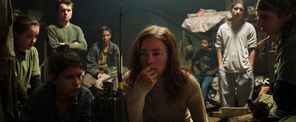 De ce fait, Monos a clairement de quoi faire bouillir la marmite à lectures multiples, de l’auto-sabordage d’un mode de vie trop hédoniste pour être canalisé jusqu’à la violence inhérente à tout régime basé sur l’autorité militaire. Mais si l’on doit lui reconnaître un filtre thématique central, ce serait d’avoir peint de façon abstraite et distante la perte des repères d’une jeune génération incapable de gérer la tâche qui lui a été confiée. A l’image d’une farce métaphorique qui retournerait son principe comme une crêpe à mi-chemin (le film est divisé en deux parties bien distinctes), les héros illuminés de Monos entament ici un terrible jeu de rôles : d’abord des créations parasites qui plient à leurs règles un no man’s land dévasté (donc sans dieux à vénérer ni modèle à suivre), ensuite des anomalies guerrières qui se plient au pouvoir invisible d’une nature qui les rejette. Dans son tableau lyrique et sauvage d’une jeunesse au bord de l’abîme qui se projette dans un imaginaire étranger à son propre contexte, on pourrait certes considérer que le film arrive hélas après le Nocturama de Bertrand Bonello, pour le coup quasi insurpassable en la matière. C’est pourtant sur son travail sonore qu’il crée autant la rupture que la surprise. La bande-sonore démentielle de Mica Levi – à qui l’on devait déjà les nappes hypnotiques et inquiétantes d’Under the Skin – est ici guidée par une savante recherche de distance avec l’action filmée, installant ainsi une contradiction souvent très nette entre l’enjeu visuel d’une scène et son caractère sonore. Mais elle sait aussi accompagner la fuite en avant de ces jeunes forces tribales par de très fortes triturations musicales, à l’image de ce sound-design organique qui prend racine lorsque la situation vire au chaos intérieur. Signe d’une parfaite maîtrise parallèle des effets de l’image et du son, la caméra d’Alejandro Landes déploie une multitude d’idées pour donner à ce décor tellurique la dimension d’un organisme chaotique : vision inouïe d’une guerre des tranchées en pleine nuit (avec caméra thermique et déluge de feu façon Apocalypse Now), passage de la froideur des réseaux souterrains à la moiteur de la jungle par un simple franchissement de bâche, incarnation d’une psyché fragilisée dans ce moment où la doctoresse recompose les deux parties de son visage en jouant avec un miroir diptyque. Une image fiévreuse et un son enfiévré, en quelque sorte.