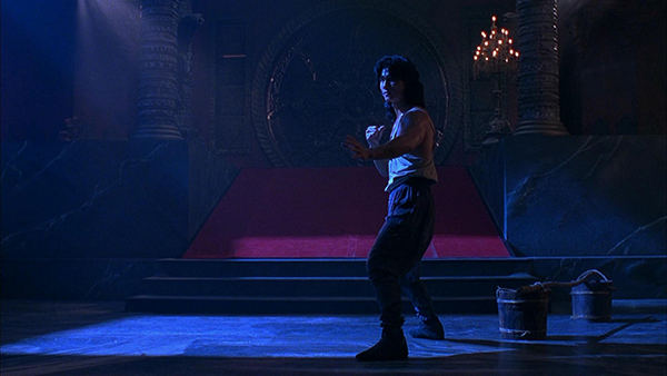 Outre la modestie inhabituelle dont il fait ici preuve dans son ambition, on reconnaîtra aussi à Anderson une vraie franchise dans le fait de ne pas chercher à nous faire avaler les couleuvres les plus grossières. Rien que dans sa scène d’introduction, le bonhomme évacue fissa ce qui constituera les deux vrais gros défauts de son film : d’un côté, des arrière-plans de ciels nuageux à base de trucages numériques incroyablement hideux (même une cinématique de jeu Sega Saturn donne moins envie de s’arracher les orbites avec une cuillère à pamplemousse !), et de l’autre, un Cary Hiroyuki-Tagawa plus ridicule tu meurs lorsque son faciès se transforme en machine à enfiler les pires rictus possibles (toutes les scènes où il dit face caméra « Ton âme est à moi ! » provoquent une gêne carabinée). Voilà, ça c’est fait, maintenant on passe à la suite. Et la suite, c’est un scénario linéaire tenant sur une moitié de confetti (qu’Anderson dupliquera des années plus tard pour l’adaptation bikini-karaté du jeu vidéo Dead or Alive), avec tout un background mythologico-fantastico-surnaturel expédié en deux-trois dialogues furtifs pour toucher au moins du petit doigt le bas de semelle des chaussures de Tsui Hark. Le tout emballé dans une mise en scène tantôt sobre tantôt aberrante, où Anderson multiplie parfois les mauvais choix en matière de positionnement de la caméra – à quoi bon vouloir rendre iconique l’apparition d’un personnage culte dans un décor si le placement de la caméra à l’autre extrémité du décor n’en révèle qu’une silhouette très lointaine ?