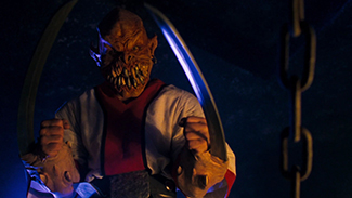 Cela étant dit, on n’ira pas jusqu’à dire que tout le monde – à commencer par le spectateur lui-même – risquait d’être pris en traître par la chose. Dès les premières images, la démarche stylistique de Leonetti ne semble viser rien d’autre que la rayure de cristallin et le saignement de tympan. Le temps de reprendre l’intrigue là où l’avait laissée (en gros, les gentils ont gagné le tournoi, mais le vilain Empereur décide d’enfreindre le règlement en faisant fusionner la Terre et l’Outre-Monde), toute l’esthétique du premier Mortal Kombat a laissé la place à un gigantesque fond vert mal incrusté, débordant de problèmes d’éclairages à gogo, d’éclairs au bruit de sifflement de serpent liane, et de costumes tout droit sortis d’un clip de Bernard Minet. Même avec un budget revu au double, tout paraît encore plus cheap qu’une série Z de Tibor Takacs, c’est dire ! Sans parler du fait que la tactique n°1 de Leonetti, outre celle de rendre son scénario incompréhensible pour le commun des mortels, se devine comme le nez au milieu de la figure : faire surgir dans le cadre tous les personnages du jeu vidéo qui ne répondait pas à l’appel dans le film d’Anderson. Et quand il se rend compte qu’il y en a trop, il ne s’emmerde pas : on élimine fissa l’un des trois héros du premier opus (Johnny Cage meurt dès l’intro en laissant intactes ses lunettes de soleil !), on ajoute des combattants en plusieurs exemplaires (on compte ici trois Reptile et un Ermac rouge qui se dédouble pour donner un Noob Saibot noir !), on adhère à la facilité narrative du Syndicat du Crime 2 (Scorpion et Sub-Zero sont morts, alors on leur invente un frère jumeau !) et on fait enfin du name-dropping pour tous ceux dont on se fiche un peu. Ainsi est donc lancée une enfilade foutraque et nonsensique de bastons mal filmées contre des ninjas, des robots au look de bêta-test Daft Punk ou des monstres en 3D visiblement conçus sur un Amstrad CPC par un stagiaire philippin.