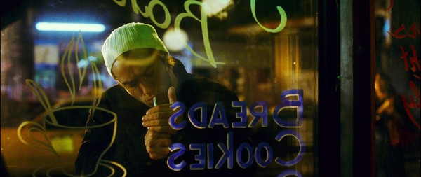 My Blueberry Nights signerait-il donc un retour évident à la veine pop de Chungking Express ? Dans la pure mise en chantier du film, peut-être, mais clairement pas dans sa structure narrative. Comme pour essayer de se trouver une nouvelle voie, Wong Kar-wai semble ici dire adieu à son procédé combinatoire visant à faire se rencontrer les personnages par le chassé-croisé et les jeux du hasard. Son sens de l’improvisation – toujours des plus actifs – le pousse au contraire à faire l’inverse de ses précédents travaux, et c’est peu dire que le virage à 180° est au rendez-vous : au vaste kaléidoscope spatiotemporel de 2046 s’est succédée ici une narration plus simple, plus dépouillée, voire plus lâche aux yeux des détracteurs, avec une héroïne qui devient le fil directeur de la narration et tout un tas de personnages secondaires assimilés à des étapes sur un trajet on ne peut plus linéaire. Le fait que le cinéaste ait même changé le montage après la sélection du film en compétition cannoise est aussi un indice qui ne trompe pas : les vingt minutes éjectées de la version cannoise racontaient tout le film en flashback en partant d’une Norah Jones située à Los Angeles. Bye-bye les flashbacks imprévus, les diffractions temporelles, les labyrinthes émotionnels. Mais le style WKW, lui, perdure.