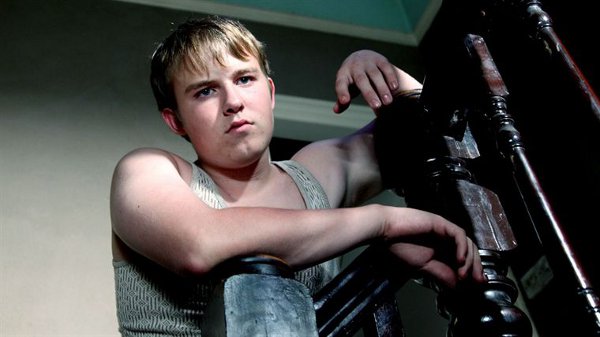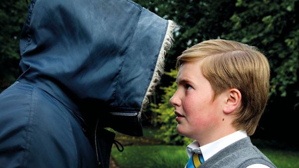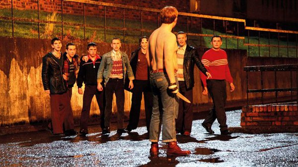 Le film s’ouvre dans une clarté presque surnaturelle que l’on sait immédiatement illusoire. A la remise des prix de fin d’année, John, tête blonde et grosses joues roses, est sans surprise parmi les meilleurs élèves, provoquant les cris de joies de sa mère et de sa tante revenue des Etats-Unis pour leur rendre visite (un autre élément autobiographique). Mais il est à peine sorti de l’école que l’irruption d’une silhouette encapuchonnée dans un manteau noir vient casser l’ambiance : le chef du gang qui règne sur le collège dans lequel John s’apprête à étudier le menace de lui taper dessus dès la rentrée. Bien vite, le film bascule donc dans le monde des bagarres et des passages à tabac auxquels s’adonnent – la nuit de préférence – ceux qu’on appelle les NEDs (Non Educated Delinquents), ces jeunes délinquants qui se regroupent en un nombre croissant de gangs. Manque de pot pour lui, la terreur du collège ne fait pas le poids face à Benny (Joe Szula), le grand frère de John qui ne joue plus dans la même cour depuis qu’il s’est fait exclure définitivement du collège pour avoir agressé trois professeurs. En même temps qu’il est protégé par son aîné, John est pris au piège : afin de s’en préserver, il doit fatalement cautionner un minimum cette violence dont il paraît avoir toujours réussi à se préserver jusque-là (il suffisait de se boucher les oreilles lorsque son père, ivre-mort, insultait, chaque soir, sa mère à travers toute la maison). La contre-plongée qui nous le montre en train de regarder, depuis la fenêtre de sa chambre, la punition excessive infligée à celui qui l’a menacé suggère qu’il a alors la position de juge. Déjà en cet instant terrible, l’image est sombre et le chemin de croix du personnage a commencé.