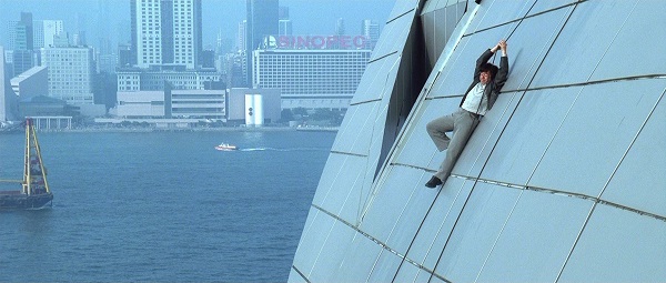 Une « nouvelle » histoire de police, donc. Avouons qu’en 2005, on l’espérait en ce qui concerne Jackie Chan, méga-star de la castagne made in HK ayant fini par devenir sa propre caricature après plusieurs années d’exil à Hollywood. Sa filmographie est là pour en témoigner : il aura suffi du carton cosmique de Rush Hour en 1999 pour laisser l’ami Jackie s’enfoncer tout seul dans les méandres de l’actionner bêta, allant de Shanghaï Kid au Royaume interdit en passant par Le Smoking, Le Médaillon ou encore l’effroyable relecture du Tour du monde en 80 jours, bouses de très haut niveau pour lesquelles un bide maousse au box-office international faisait figure de juste punition. Rien d’étonnant à ce que les vrais fans de l’acteur en soient arrivés à ronger leur frein : fonctionnant sur une formule rance à base de gags galvaudés et de combats câblés, les derniers nanars de Jackie faisaient oublier l’immense artiste martial et clown cascadeur qu’il fut à la grande époque de Police Story et de Drunken Master 2, pour n’en retenir qu’une banale copie quinqua, contrainte à singer la posture du guignol caoutchouc et à faire appel à une doublure pour ses cascades les plus suicidaires. Mais qu’à cela ne tienne : après une décennie bien ramollo, New Police Story était bel et bien le film de la rédemption pour un performeur aux cartilages quelques peu abîmés. Retour à Hong Kong, certes, mais surtout retour aux sources pour un acteur conscient d’avoir lui-même vieilli et de devoir changer de registre. Et la solution trouvée avait de quoi laisser bouche bée : réinvestir sa facette de cascadeur fou développée dans la saga Police Story pour la transformer en une sidérante séance d’auto-flagellation publique. Fallait oser.